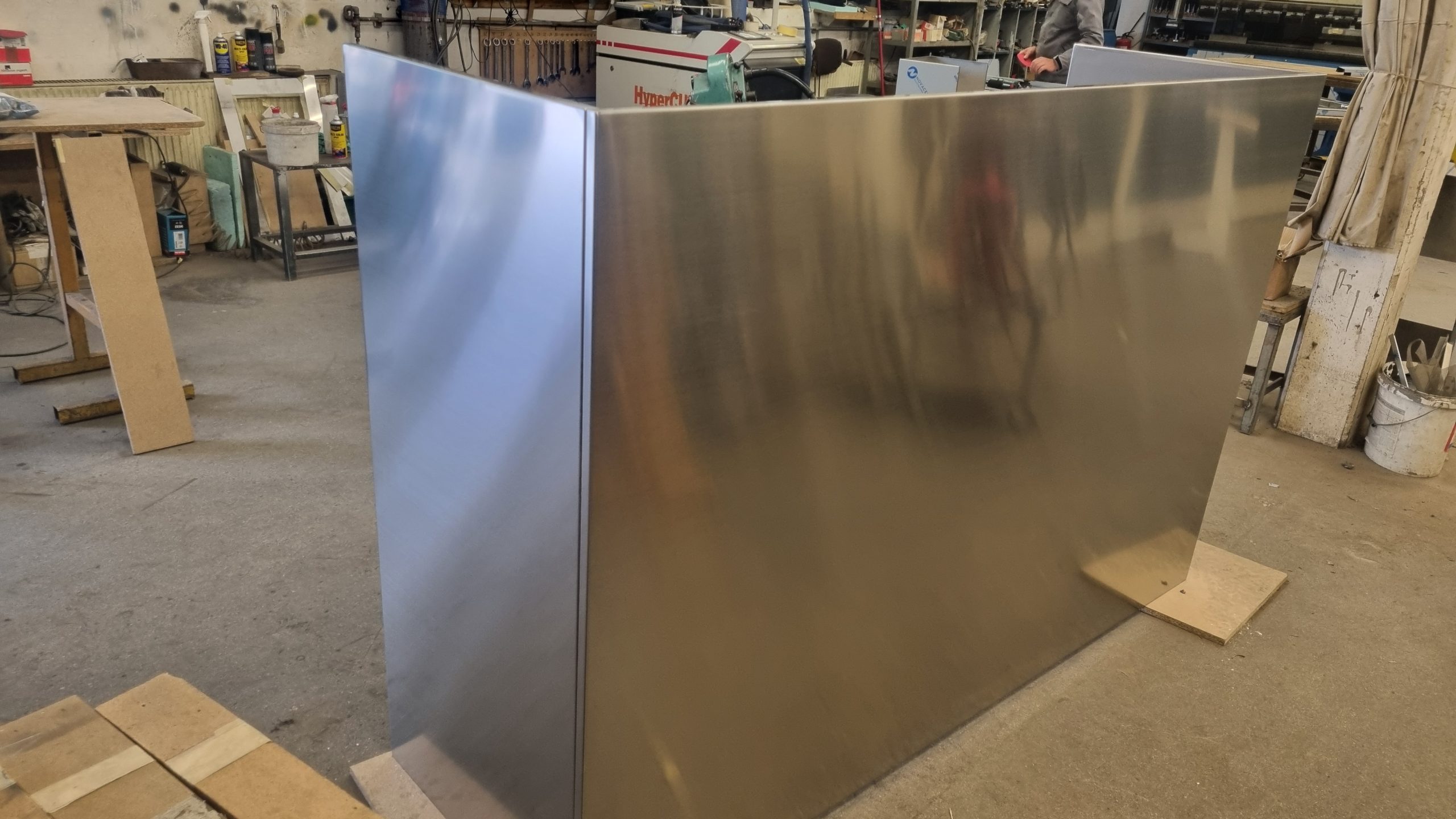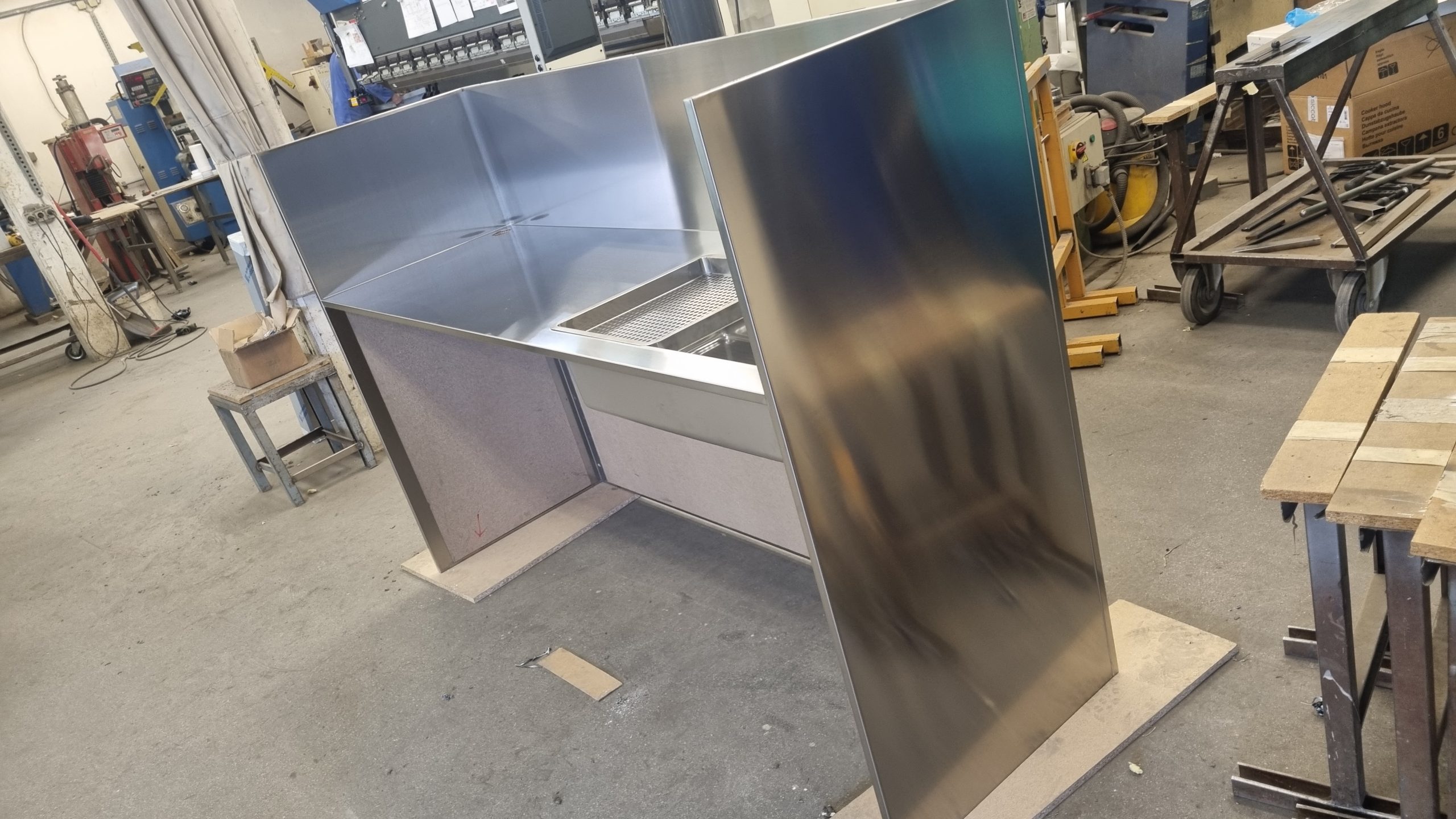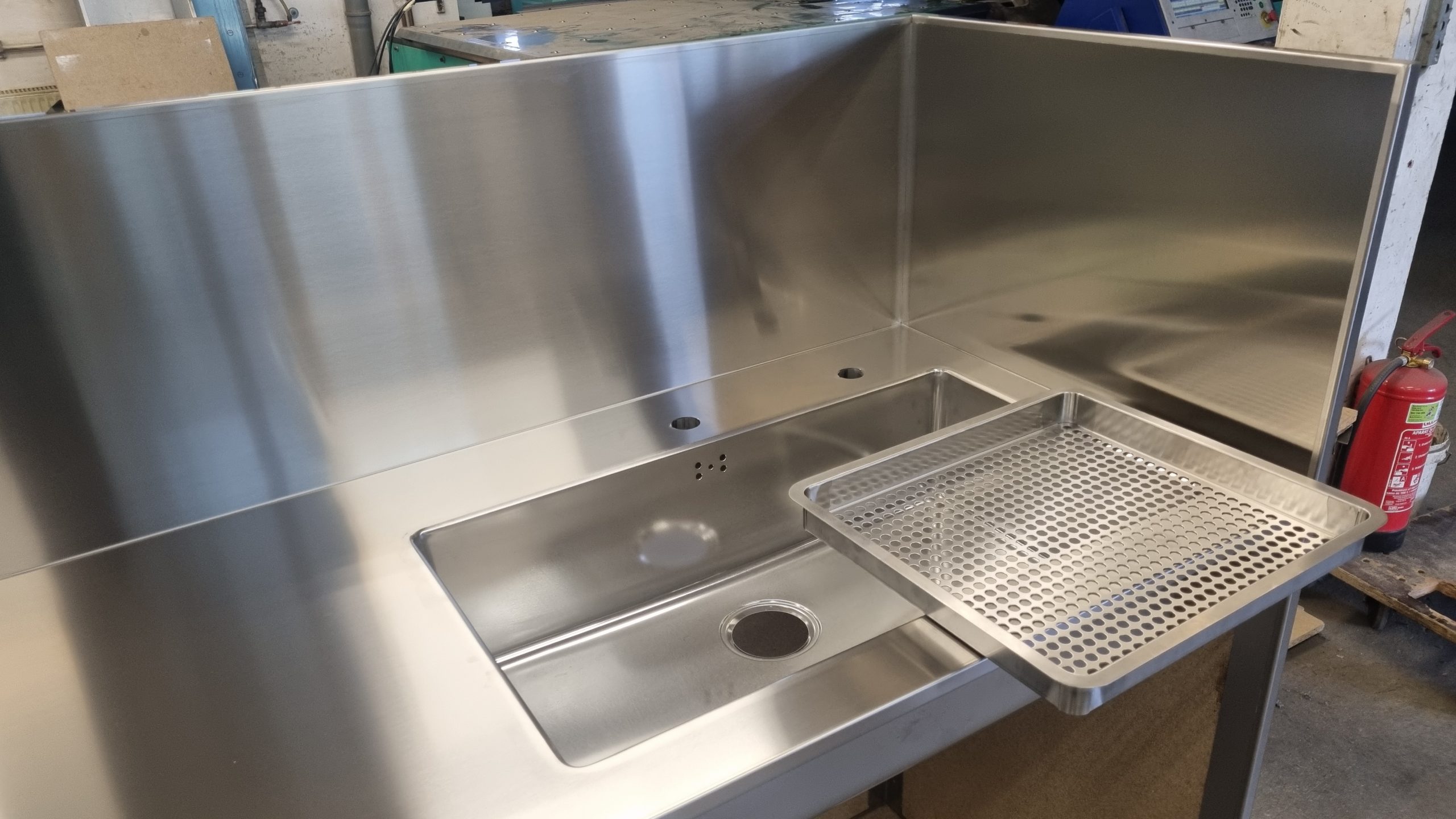 Možemo izraditi kuhinju za kućanstvo od nehrđajućeg čelika . Ploča od nehrđajućeg čelika sa sudoperom , ugradbenom pećnicom , pločom za kuhanje , perilicom posuđa i hladnjakom .